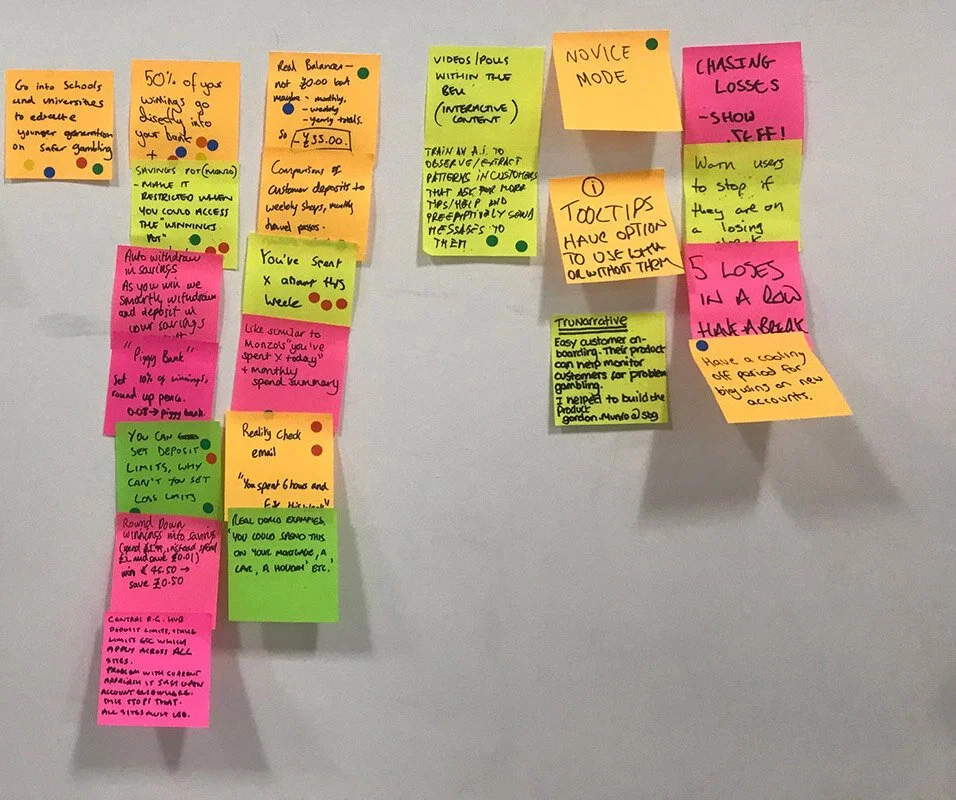 This particular case study was focused on our 2020 Power Hour initiative. As a working ‘SG’ group we identified existing problems from onsite customer feedback and our club house insights to generate ‘how might we’s’ for the week ahead. The workshops involved idea generation across the business — small working groups were then identified with a mixture of disciplines across the business to drive forward each campaign. Each idea was then submitted and pitched to leadership, which included Paul Buck (EPIC Risk Management) — the top 2 successful campaigns would be green lighted for build by the business.